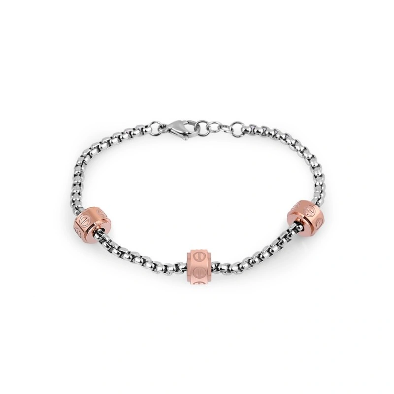 • Perles décoratives : motifs cylindriques en acier rose gold