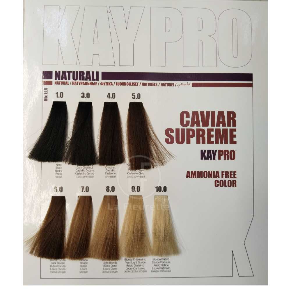 Caviar Suprême de la marque italienne Kaypro est une teinture permanente professionnelle qui couvre à 100% des cheveux blancs par tons riches, intenses et lumineux.