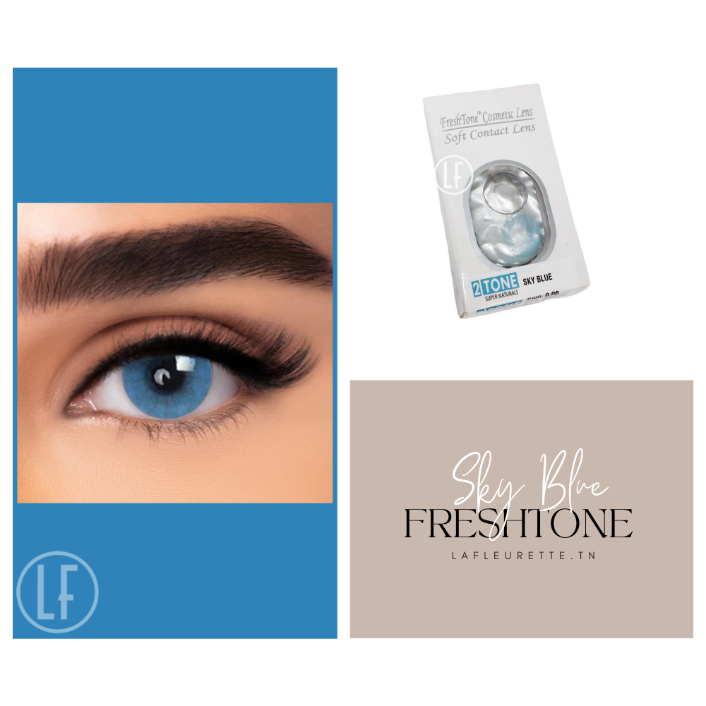FreshTone Sky Blue les Lentilles colorées de Contact sont en silicone hydrogel de qualité, elles conviennent à la fois aux yeux foncés et clairs et les couvrent parfaitement. Quelle que soit la couleur de vos yeux, les lentilles de FreshTone ont une couverture absolue et naturelle avec un dégradé de couleur naturel.
