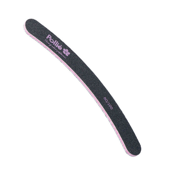 Cette lime à ongles noire banana de la marque espagnole Pollié est suffisament épaisse pour un confort optimal lors du travail de limage des ongles ou faux ongles. Ses deux face vous permettront de travailler les différentes étape de vos pose d’ongles en gel, d’ongles en acrylique ou encore de faux ongles.