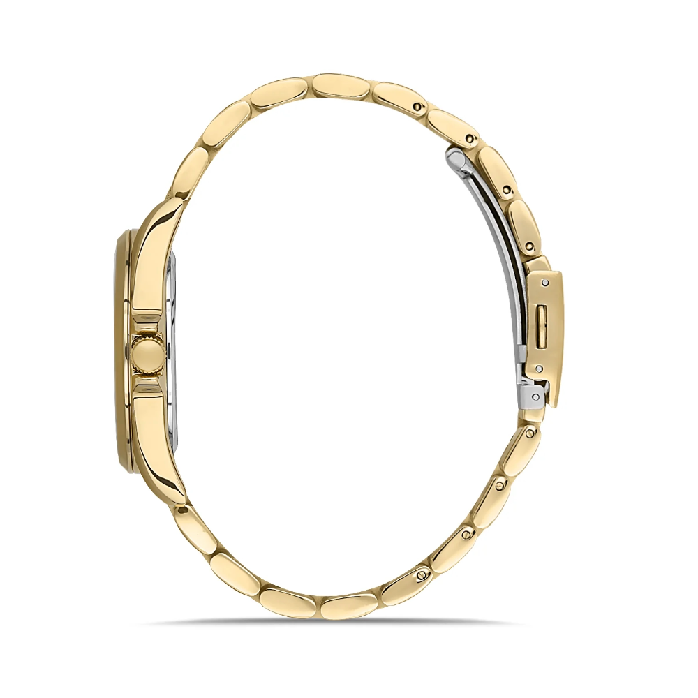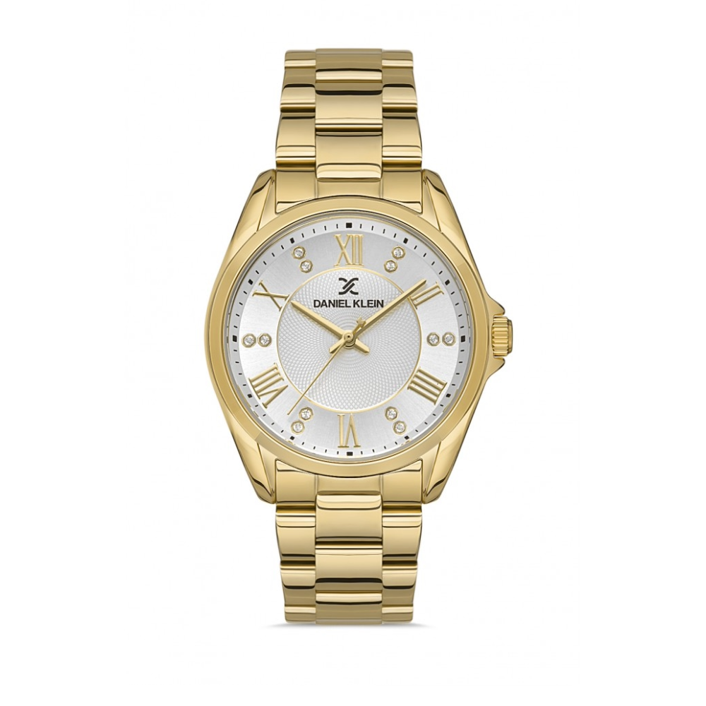 Montre élégante Daniel Klein pour femme, modèle DK.1.13215-4, avec bracelet doré et cadran assorti serti de cristaux.