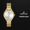 Coffret Daniel Klein 3 pièces pour femme incluant montre dorée, collier et bracelet assortis.