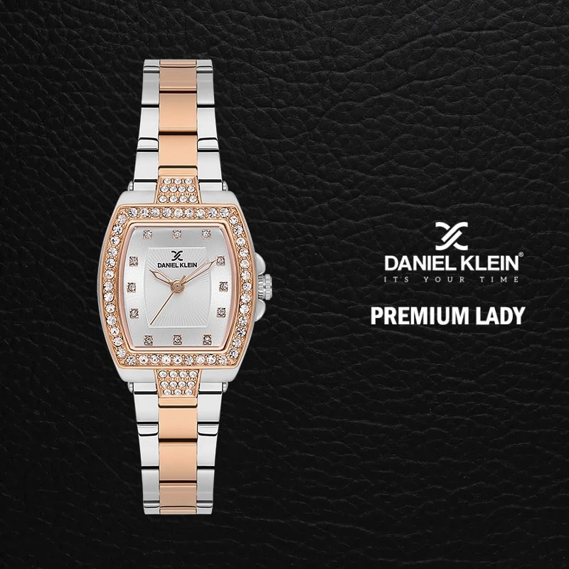 Montre femme Daniel Klein bicolore avec strass, cadran argenté et bracelet acier argent & rose gold. Un design élégant et lumineux, parfait pour sublimer chaque tenue.