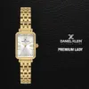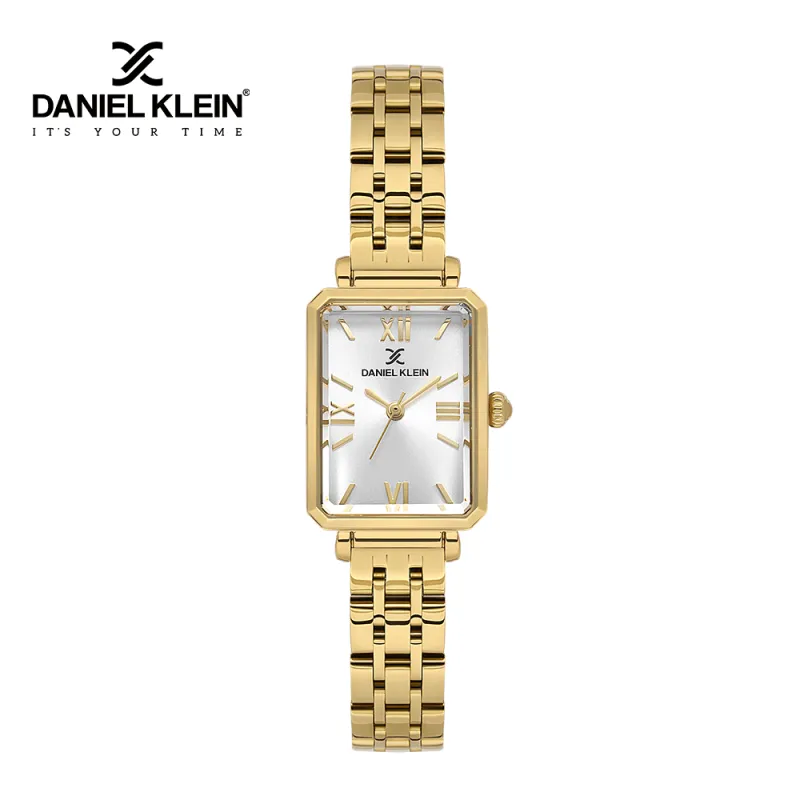 Montre femme Daniel Klein au design élégant, avec boîtier rectangulaire doré et cadran argenté aux index romains raffinés. Son bracelet métallique doré offre une allure chic et intemporelle. Un modèle fin, féminin et parfait pour le quotidien comme pour les occasions.
