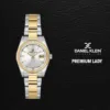 Montre élégante Daniel Klein pour femme avec cadran blanc et bracelet bicolore argent et or rose.