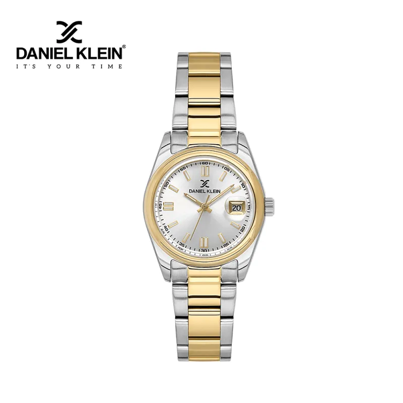 Montre femme Daniel Klein au design élégant bicolore argent et or. Son cadran argenté avec affichage de la date offre un style classique et moderne à la fois. Bracelet en acier inoxydable durable, idéale pour un usage quotidien comme pour les occasions.