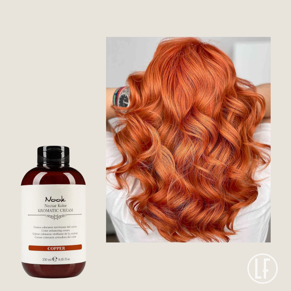 Le Masque colorant Cuivré Nook rappel de couleur 250 ml est adapté aux cheveux naturels, colorés ou méchés.