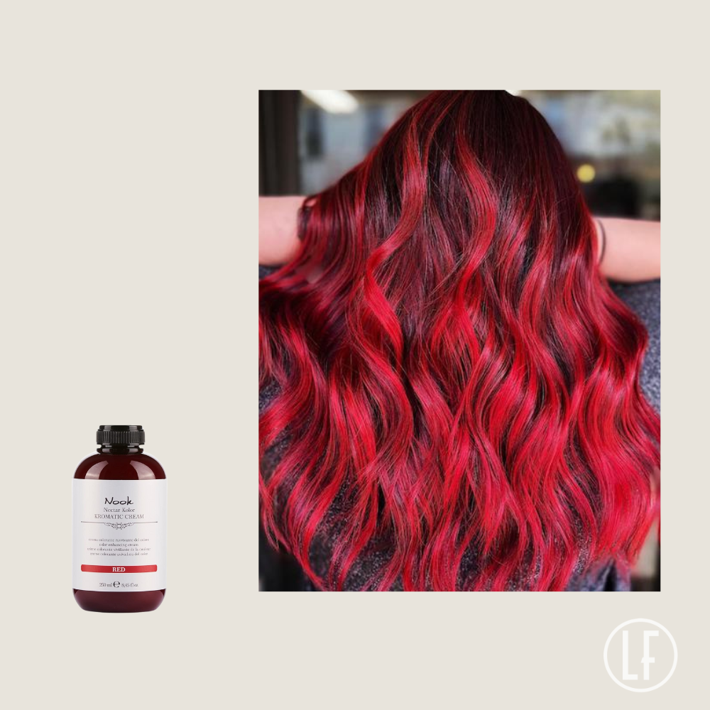Nook Kromask Red la crème colorante vivifiante 250 ml illumine les cheveux, ravive les reflets et rehausse la couleur entre les colorations.