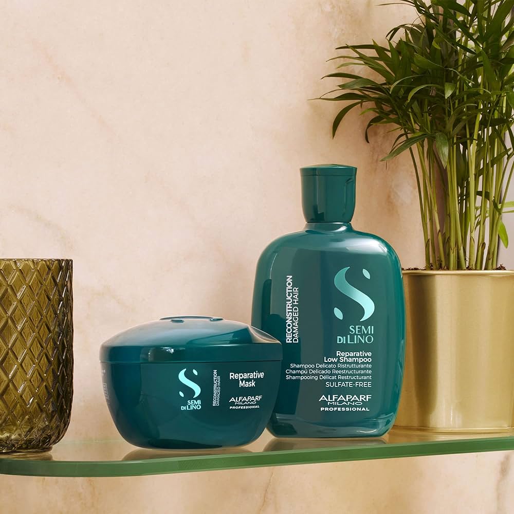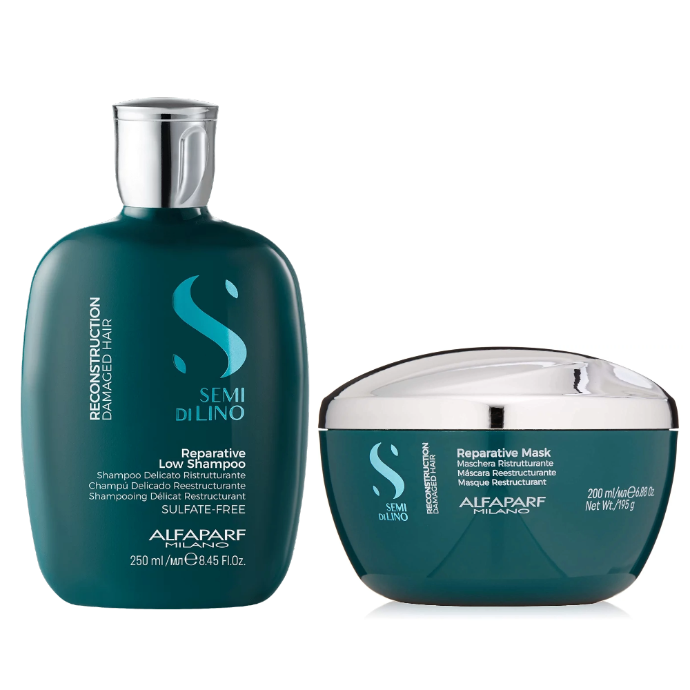 Ce pack Semi Di Lino Reconstruction  d’Alfaparf est composé de 2 produits : Un shampoing sans sulfates 250 ml et un masque 200 ml.