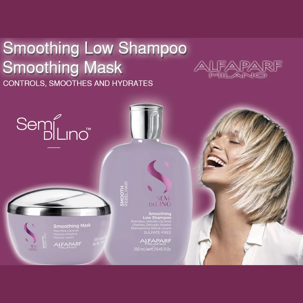 Semi Di Lino Smooth est une gamme de produits de soins capillaires créés pour contrôler les cheveux indisciplinés et difficiles à manier. Ils hydratent les cheveux, alignent les fibres et neutralisent les frisottis causés par l’humidité et les agents atmosphériques, en restaurant la beauté naturelle.