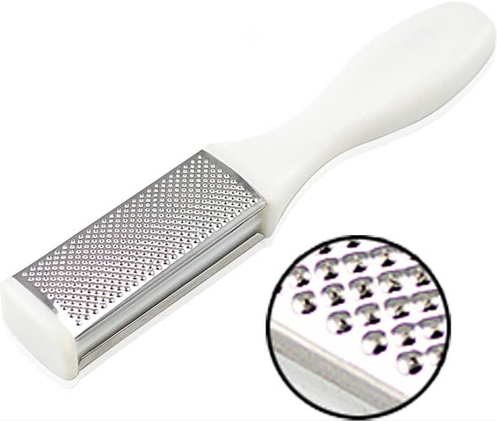 Râpe métallique élimine les cors, les surfaces rugueuses et les peaux mortes des callosités, elle polit la plante du pied et redonne aux pieds souplesse et douceur.