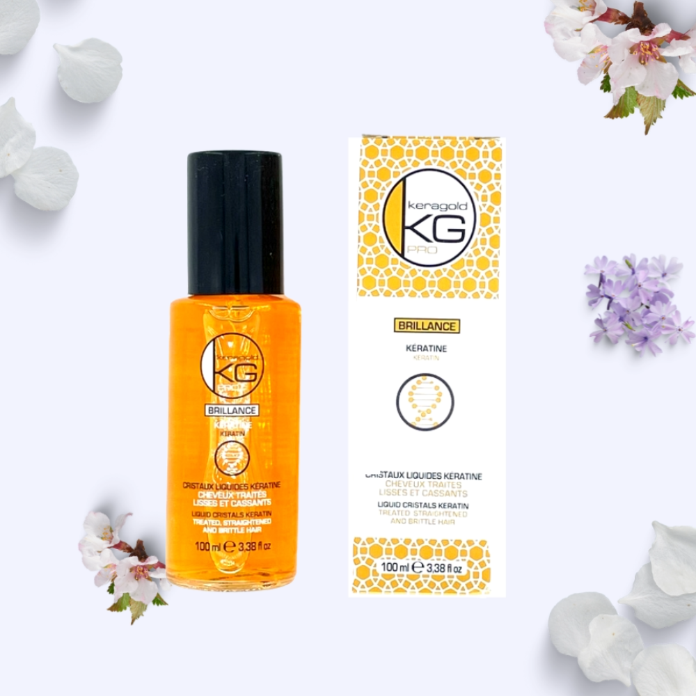 Le sérum Kéragold pro Brillance est riche en cristaux liquides et en kératine.