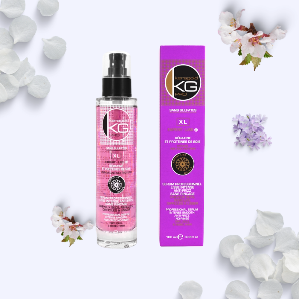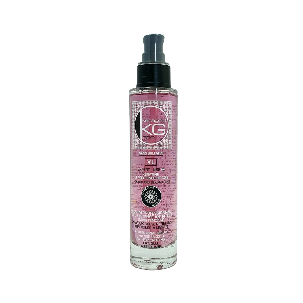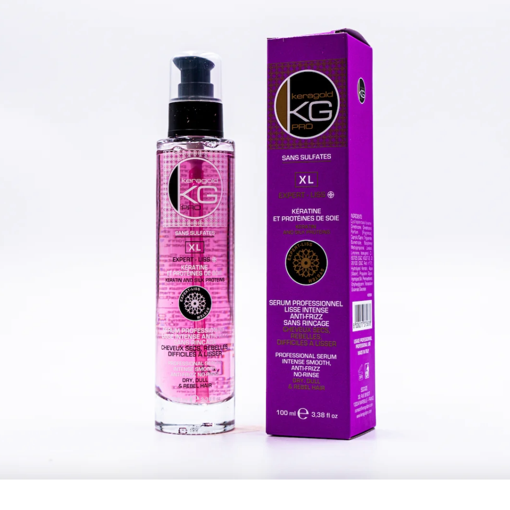 Découvrez le sérum Keragold pro Liss Intense anti-frizz sans rinçage, sans sulfates à la kératine et à la protéines de soie. Ce sérum est spécialement conçu pour les cheveux secs, rebelles et difficiles à lisser. Sa formule intense aux protéines de soie lisse, nourrit et répare les zones capillaires endommagées, sans alourdir les cheveux, pour un résultat soyeux, brillant et lumineux.