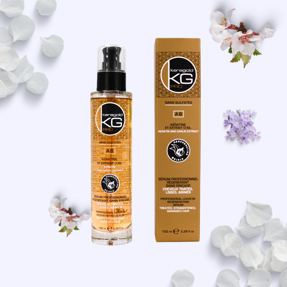 Sérum professionnel et régénérant sans rinçage, sans sulfates à la kératine et l’extrait d’ail. Ideal pour les cheveux traités, lissés et abimés.