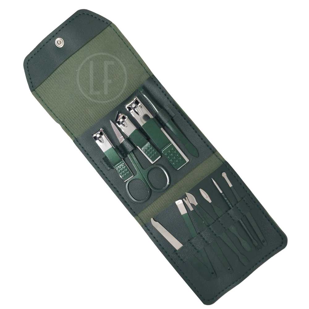 Ce set manucure et pédicure est composé de 12 pièces emballés dans un étui en cuir fashion.