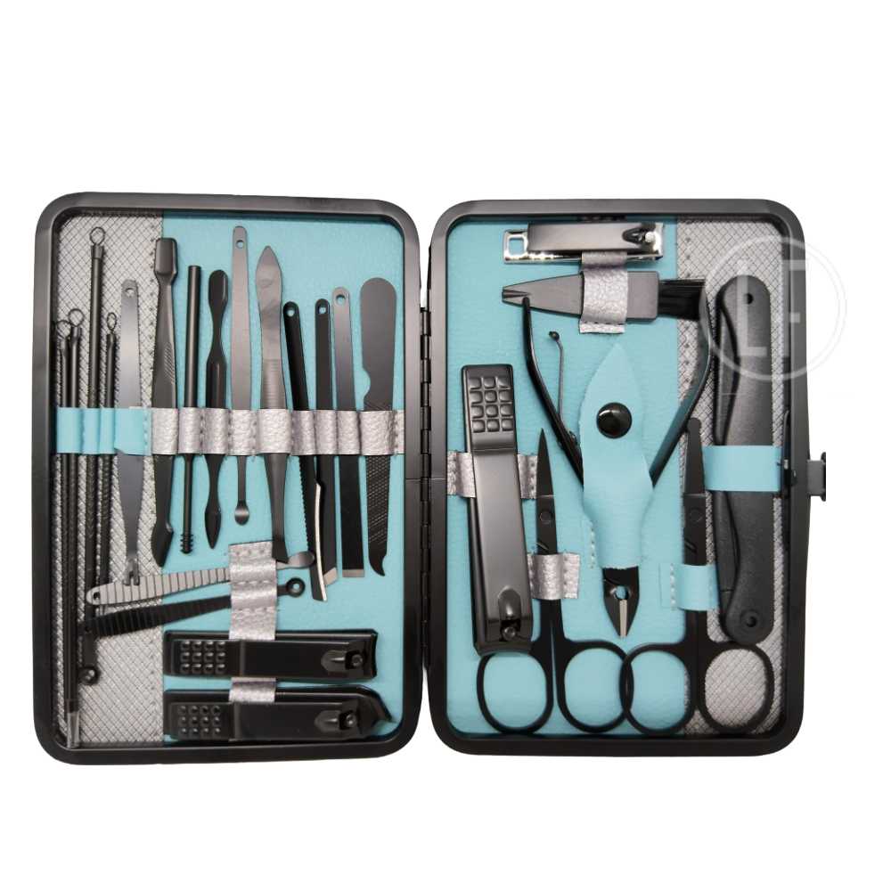 Ce set manucure et pédicure est composé de 25 pièces emballés dans un étui en cuir fashion.