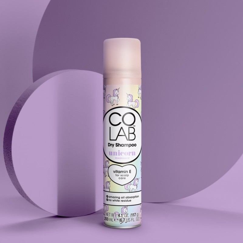 Le shampooing sec Colab Unicorne revitalise les cheveux instantanément avec son parfum mystique et enchanté…le parfum de l’arc-en-ciel et des rêves !